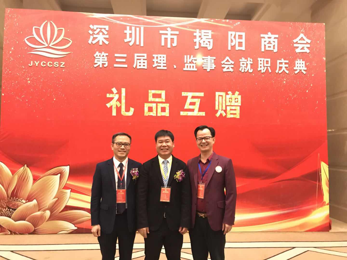 2017年12月30日,深圳市揭阳商会第三届理、监事会就职典礼活动圆满结束,黄时余任新一届会长,黄旭初就任监事长。揭阳市副市长、市司法局党组书记姚丽璇,共青团揭阳市委书记孔博以及其他领导出席庆典。铭科集团董事长陈浩鹏受邀出席庆典。