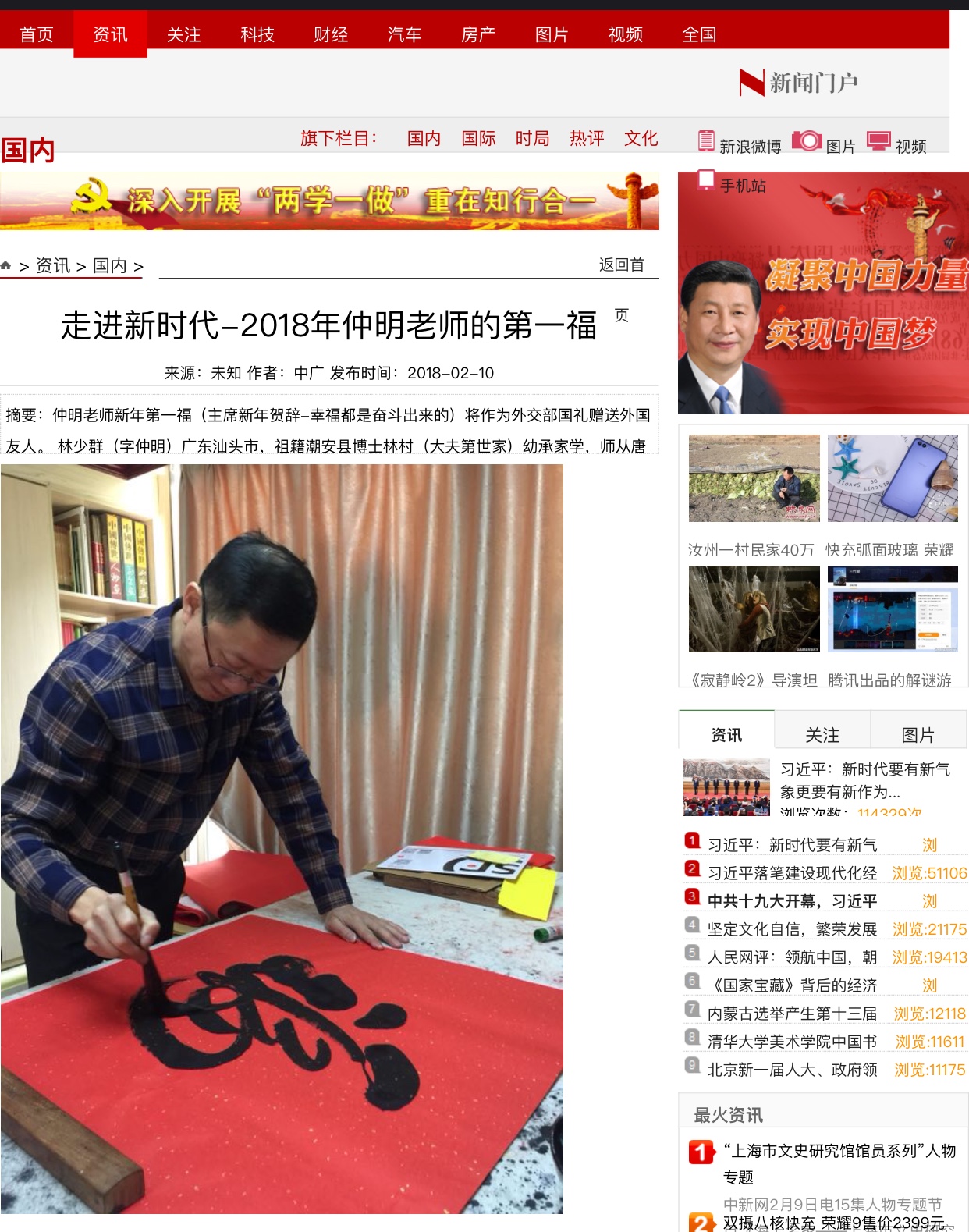 仲明老师2018新年第一福,已作为中国外交部国礼赠送外国友人。