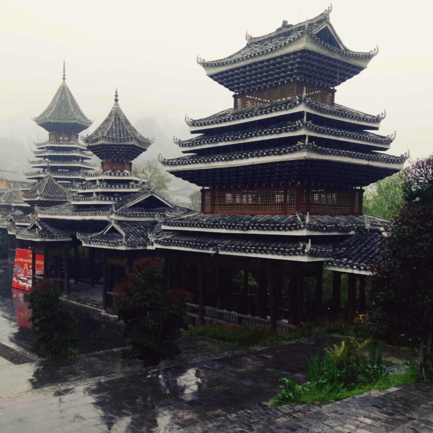 天上飘着丝丝细雨,冲淡了我们一大早起床的郁闷,更是为这座侗寨带来了一种别样的朦胧美。