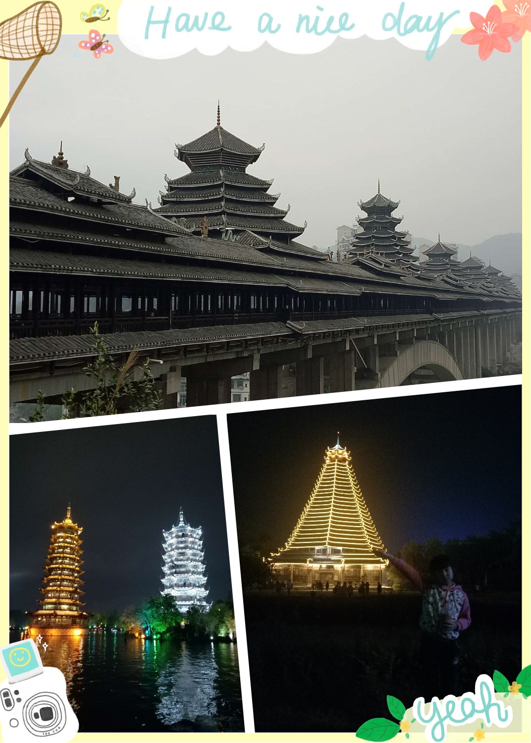 第二站我们游览了世界最长的风雨桥一一三江风雨桥,是三江侗族自治县内的一处标志性景点,它将侗族的木构风雨桥与现代钢筋水泥结构相结合,成就了这座在国内长度和规模都名列前茅的特色风雨桥。桥上为木质结构,有亭有塔,横跨于浔江之上,精美绝伦。