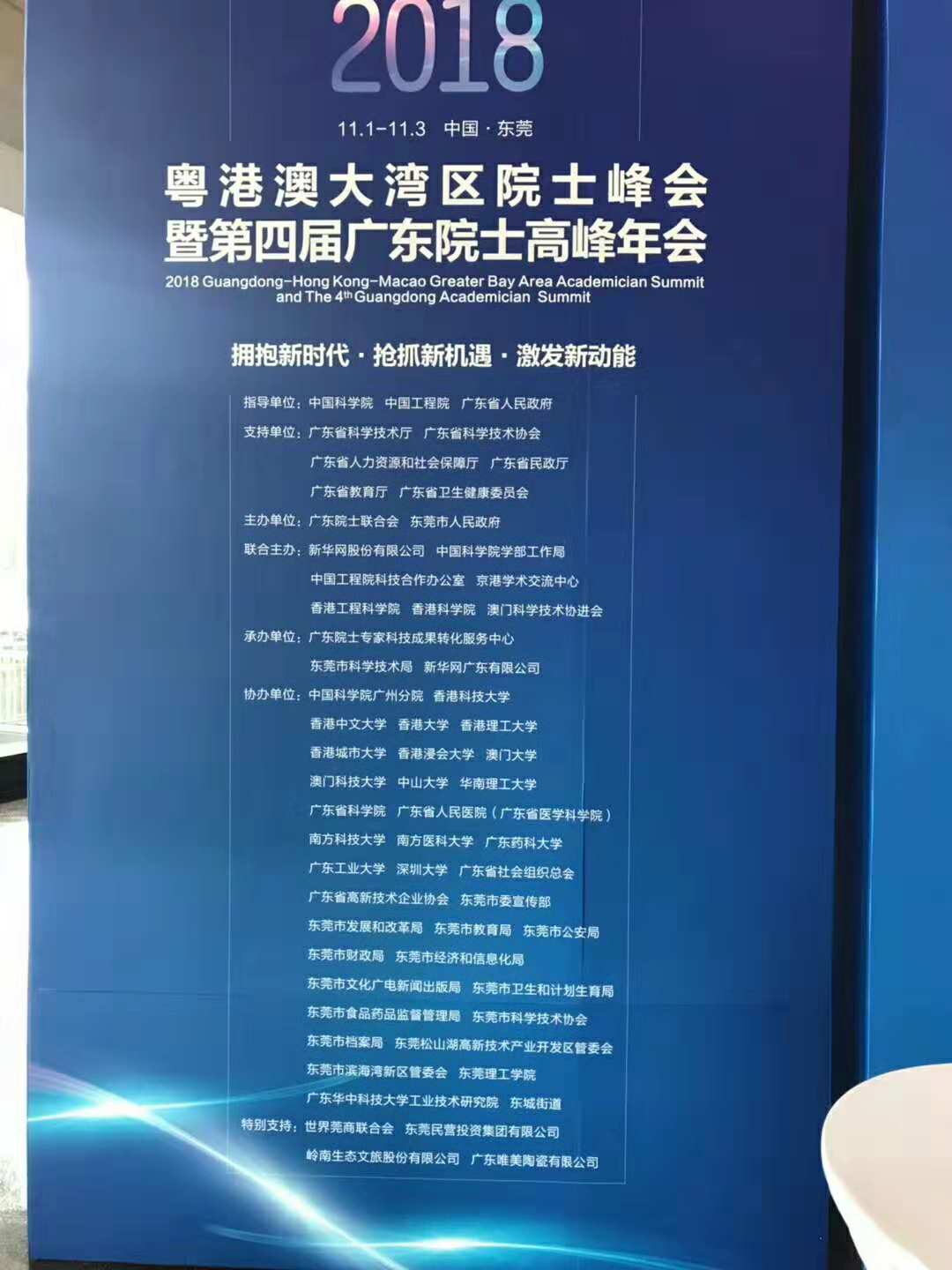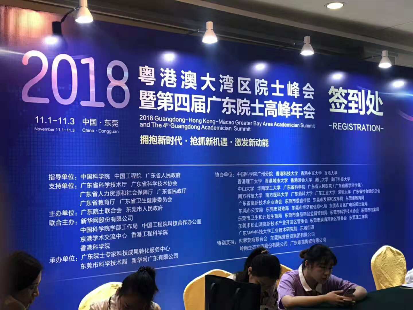 11月2日,铭科集团董事长陈浩鹏先生作为新型研发机构代表前往东莞参加2018年粤港澳大湾区院士峰会暨第四届广东院士高峰年会。