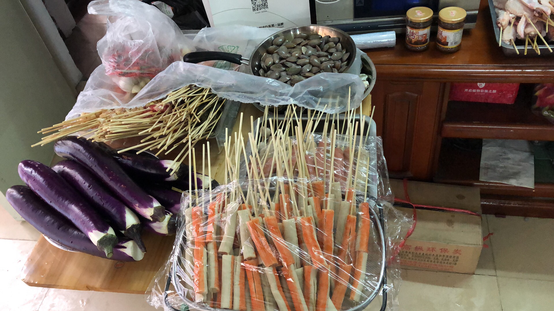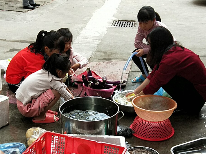 大食会前,大家齐心协力处理和烹饪食材。