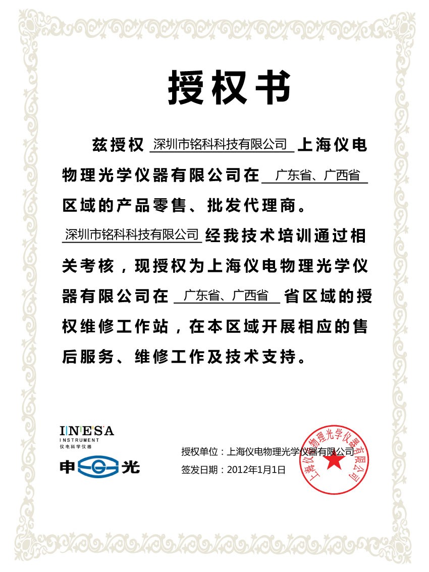 您好!我公司现已与上海仪电物理光学仪器有限公司(原上海精密科学仪器有限公司物理光学仪器厂)正式签约,成为上海仪电物理光学仪器有限公司(原上海精密科学仪器有限公司物理光学仪器厂)在广东省、广西省地区的授权代理商,上海仪电物理光学仪器有限公司(原上海精密科学仪器有限公司物理光学仪器厂)旗下的全部产品和服务均可由我公司为您直接提供,特此告知广大客户。