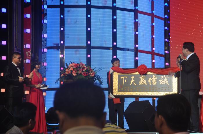 十大华人李海东教练现场赠送牌匾《诚信赢天下》