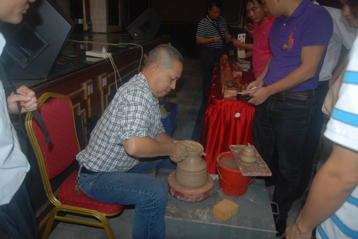 潮州手拉壶大师蔡镇双先生现场表演手艺,引来嘉宾们一声赞叹。