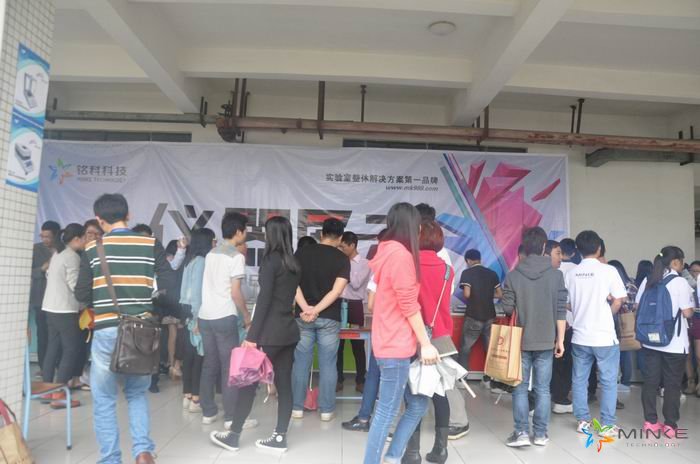 铭科科技校园仪器设备展览会于2014年5月9日晚在广东环境保护工程职业学院实训楼圆满结束,本次铭科科技校园仪器设备展览会由广东省教育厅主办,广东省环保厅协办,并由深圳市铭科科技有限公司冠名举行。校园仪器设备展品类繁多,无论小到大的仪器都摆设得整齐精美,无一不让人们感觉耳目一新。在场吸引了很多师生围观和试验,师生们似乎对热门的仪器都有着浓厚的兴趣,纷纷提出问题并由厂家技术工程师一一做解答。除此之外,铭科科技现场还进行了奥豪斯电子天平计件活动和抽奖活动,许多同学积极参与活跃了整个校园,完全缓解了大赛前紧张的气氛。这气氛同时感染在场观摩的老师,老师们对铭科科技这种综合型平台表示非常的认可,希望能够与铭科科技进行下一步合作。在此,对校园仪器设备展览会光临指导交流的来宾们表示衷心的感谢!同时感谢各大厂商对校园仪器设备展览会给予极大的关注与支持。