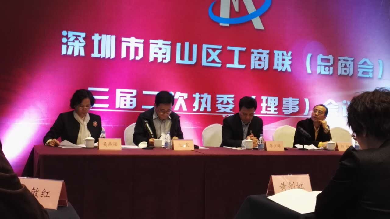 1月8日下午,南山区工商联(总商会)三届二次执委(理事)会议在圣淘沙酒店(桃园店)成功举行,深圳市铭科科技有限公司 高层有幸作为应邀嘉宾出席此次会议。区委常委、统战部长郭钢,副区长纪震,市工商联党组成员、专职副主席李少雄出席会议并讲话。会议由区委统战部副部长、工商联常务副主席吴燕珊主持,区工商联主席、总商会会长、方大集团董事长熊建明作2015年区工商联(总商会)工作报告及2016年工作部署。区总工会、妇联、经促局、教育局、科创局、民政局、人资局、住建局、安监局、文产办、南山地税和国税相关负责人,区工商联(总商会)副主席、副会长、部分常务理事、理事、下属商会会长共130人参加了会议。