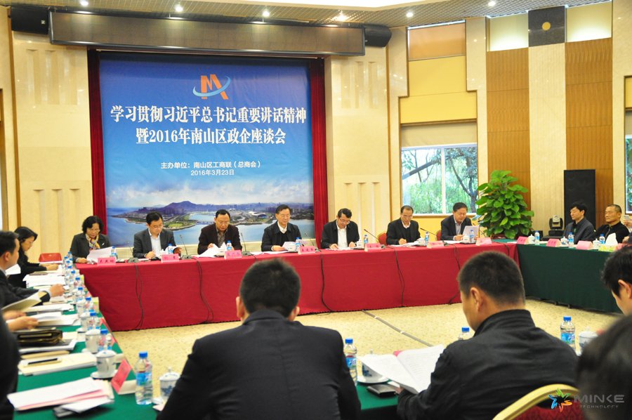 第二阶段政企座谈会议由区委常务、区委统战部部长郭刚主持。南山区委书记姜建军,南山区区长王强,南山区副区长纪震,肖晓青、薛兴强、唐敏红等领导,南山区督查室、教育局、科创局、市场监督局等各相关部门、政企负责人参加会议。会议中区工商联主席、总商会会长熊建明发言。