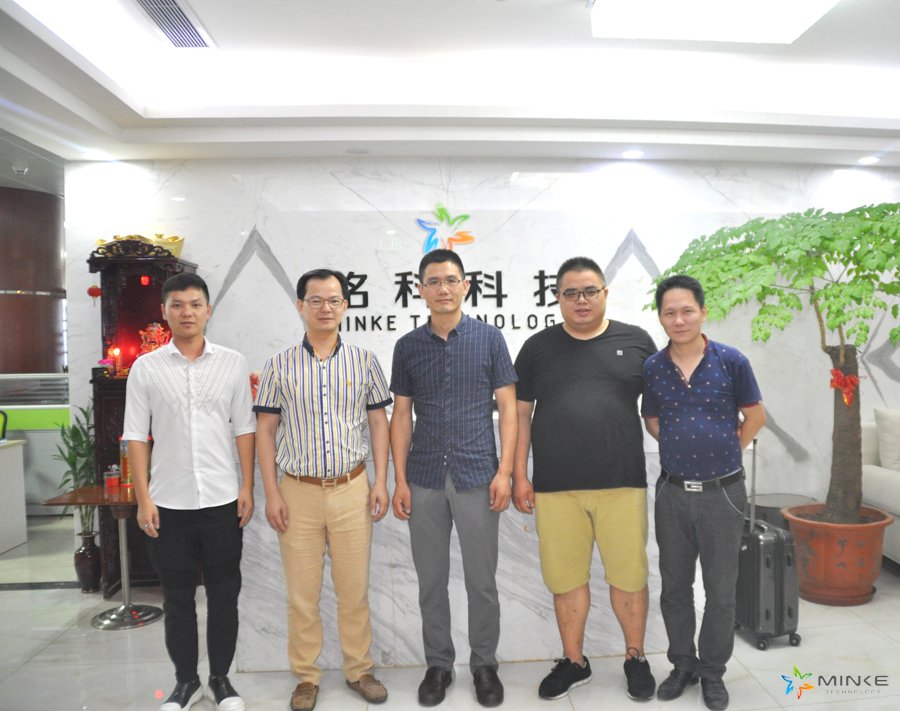 参观与商讨结束后,华夏科创来宾与铭科集团高层在前台合影留念,感谢华夏科创的到来,希望日后有更多的厂家加入铭科集团,携手共创引领科技未来!