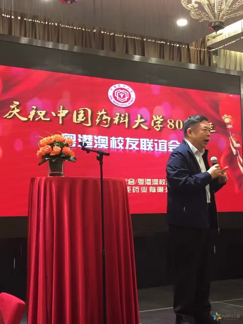 11月12日,2016中国药科大学粤港澳校友会年会盛宴在广州举行。铭科集团应邀成为嘉宾参加本次盛宴,来自香港、澳门、广州、深圳、珠海、佛山等各地的校友代表约200人参加了此次活动。活动现场大家欢聚一堂,相互沟通交流,气氛热烈。